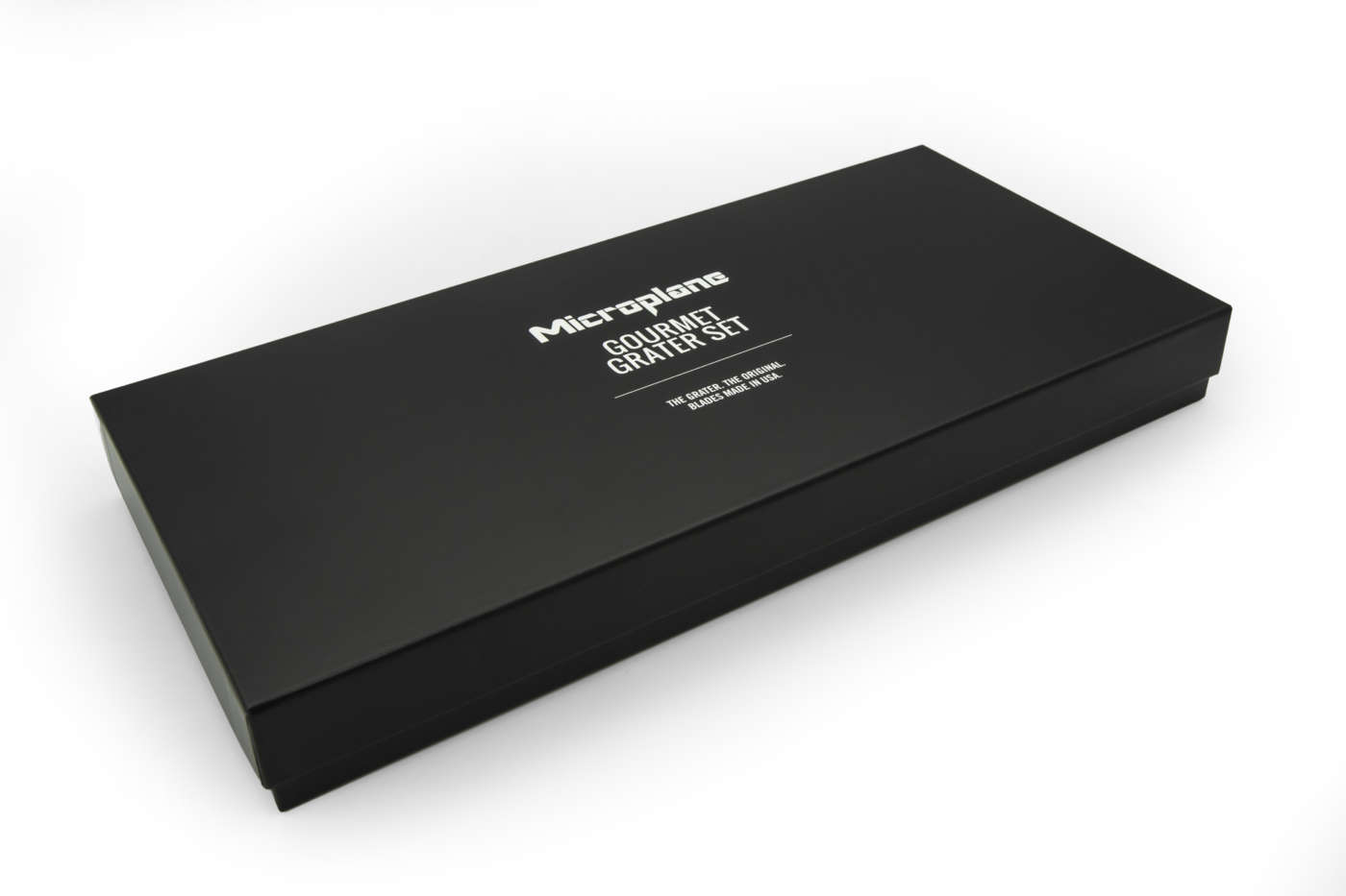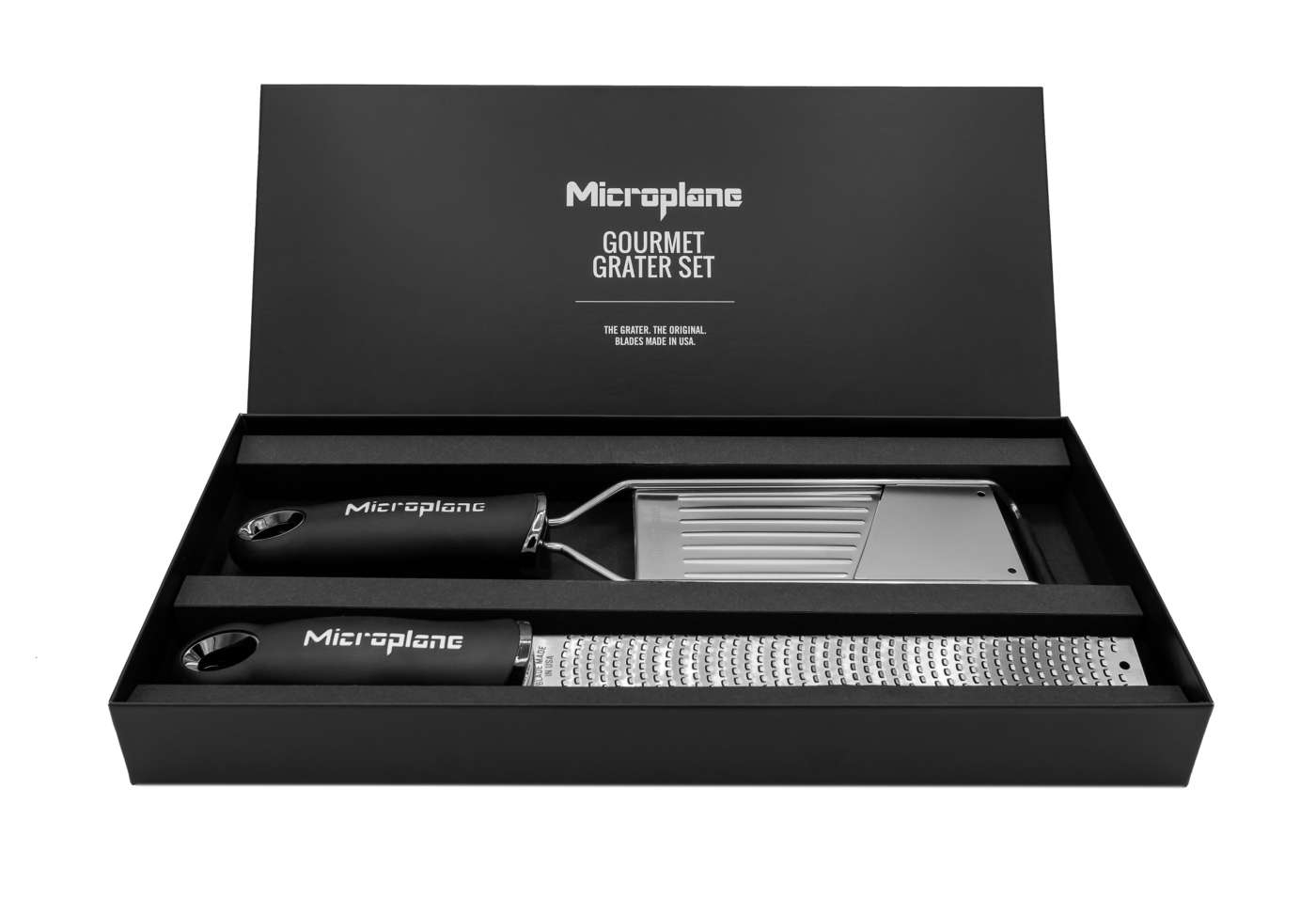 Due accessori iconici, funzionali e di design, realizzati con impugnatura soft touch e lame in acciaio di altissima qualità, sono racchiusi nel Set regalo Gourmet che comprende: la Premium Zester, la grattugia allungata, ormai oggetto di culto tra i più grandi chef, e la Mandolina Gourmet, che fa parte dell’omonima collezione composta da dieci grattugie dalle lame differenti per affettare diversi tipi di alimenti in tutta sicurezza. Entrambi ripensati in versione Gourmet.