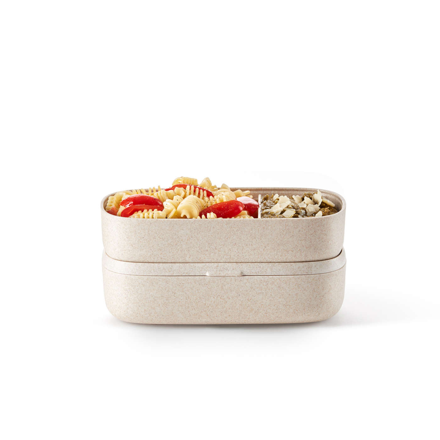 Le Lunch box, provviste di chiusura ermetica per un trasporto sicuro, e possono essere riposte in frigorifero, utilizzate nel microonde e lavate nella lavastoviglie. Ve ne sono di diverse dimensioni: la più grande è composta da due contenitori pratici e leggeri, uniti da una fascia elastica, e fornite di scompartimento per riporre le posate; la più piccola, invece, è dotata di un inserto in silicone e pieghevole per snack o salse.
