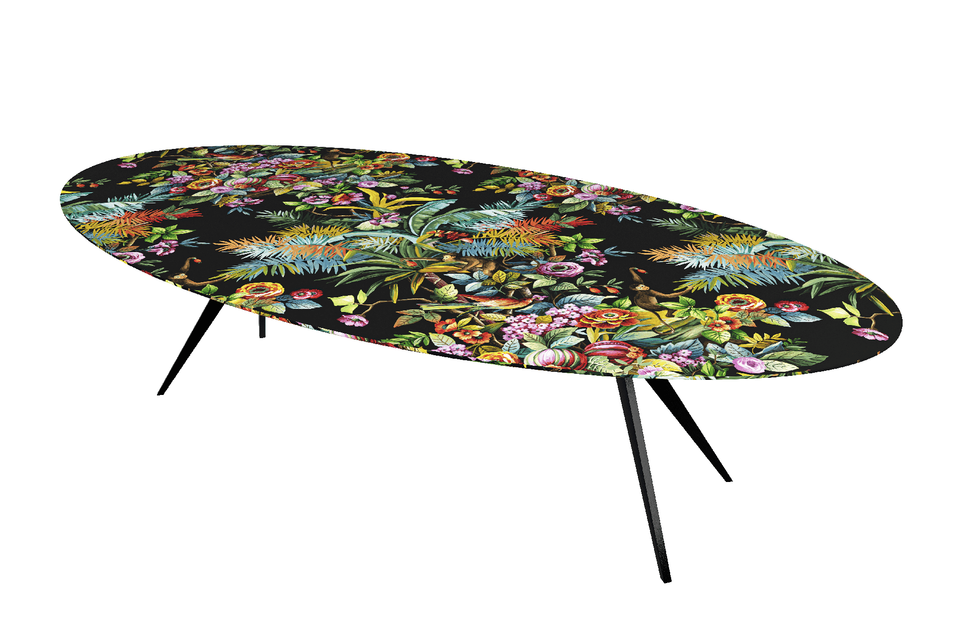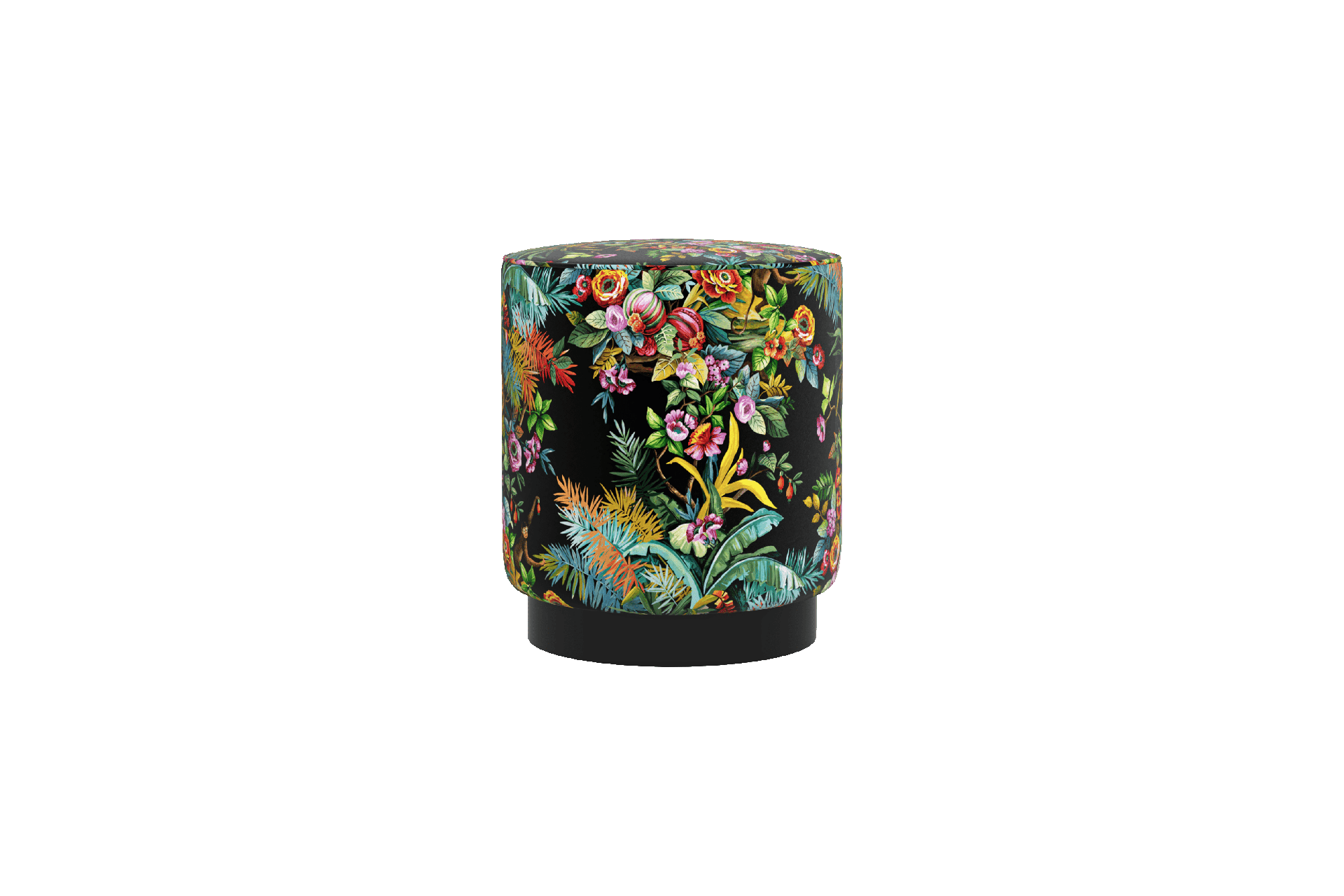 Il secondo ambiente è un soggiorno ispirato alla condivisione: qui la carta da parati green Exotic Jungle ci trasporta in una giungla, tra anemoni e piante rigogliose, scimmiette curiose e colibrì adagiati sulle palme.