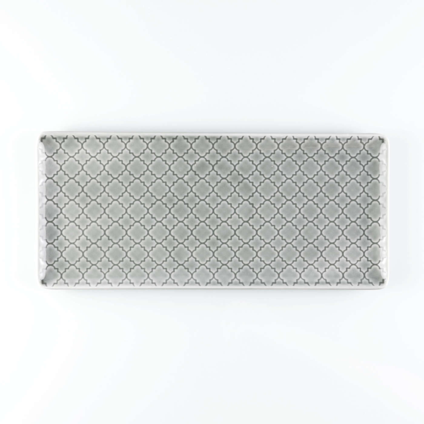 Ripresi nei vari elementi che compongono Tile, troviamo i caratteristici disegni geometrici dello zellige, come viene definita nel mondo arabo la piastrella in terracotta, tagliata e smaltata. La collezione comprende piatti, bicchieri, vassoi, insalatiere, tazzine da caffè e mug, proposti in tre tonalità passepartout: la purezza del bianco, l’eleganza intramontabile del grigio, la delicata armonia del blu.