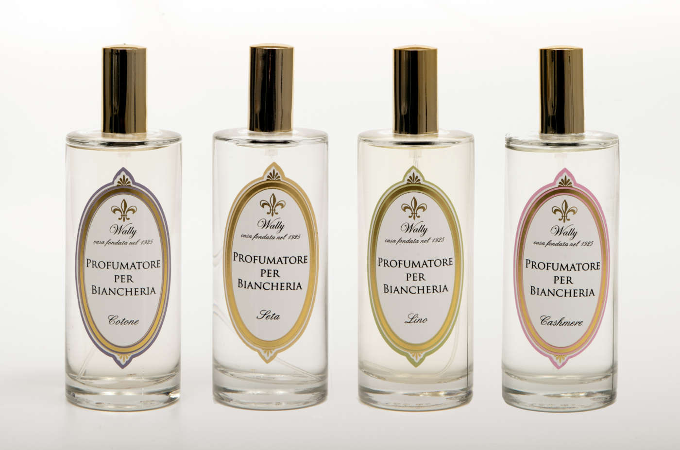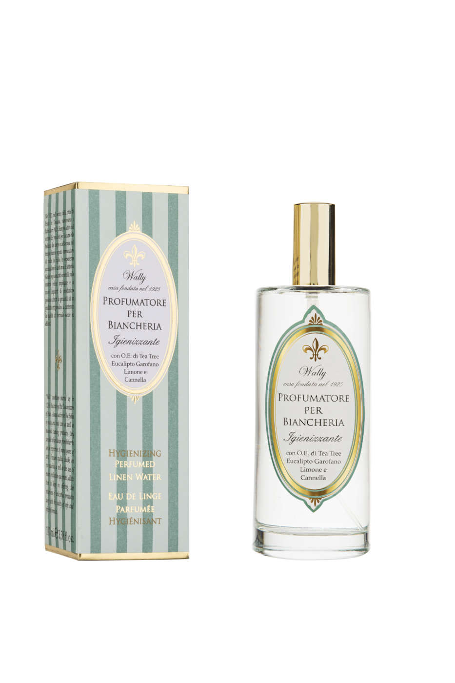 Nel range di proposte di profumatori per biancheria firmati Wally c’è anche una formulazione con proprietà igienizzanti. L’idea si sviluppa a partire dagli oli essenziali di tea tree, eucalipto, garofano, limone e cannella: estratti noti per le loro proprietà antibatteriche e batteriostatiche di letteratura. Quest’azione si sposa ottimamente con la sensazione di pulizia e delicato candore trasmessa dall’articolo. Il profumatore si spruzza a distanza di 20/30 cm ed è ideale per lenzuola, biancheria intima, capi d’abbigliamento, asciugamani e qualsivoglia tessuto sia naturale che sintetico. È consigliabile l’uso anche direttamente nel vano armadio o all’interno dei cassetti prima di riporre il bucato. Il brand propone inoltre una collezione di profumatori ispirati proprio alla fibre tessili.