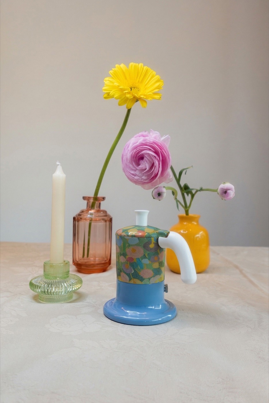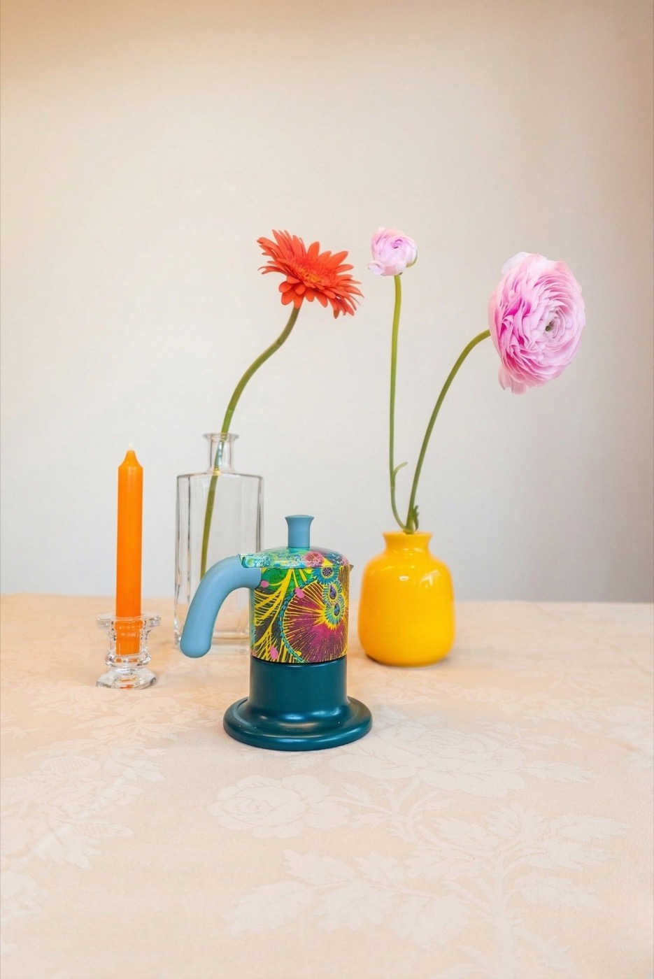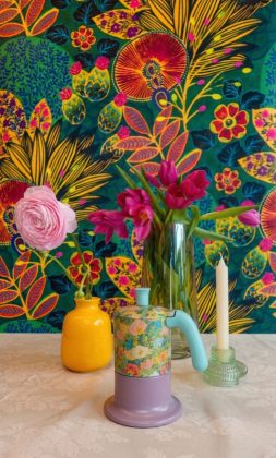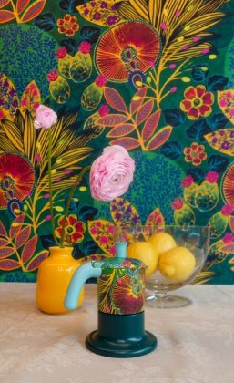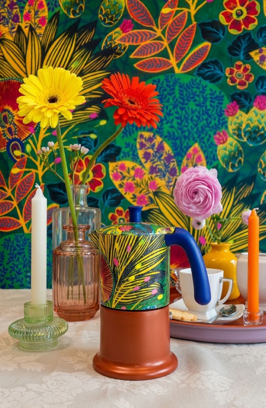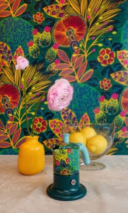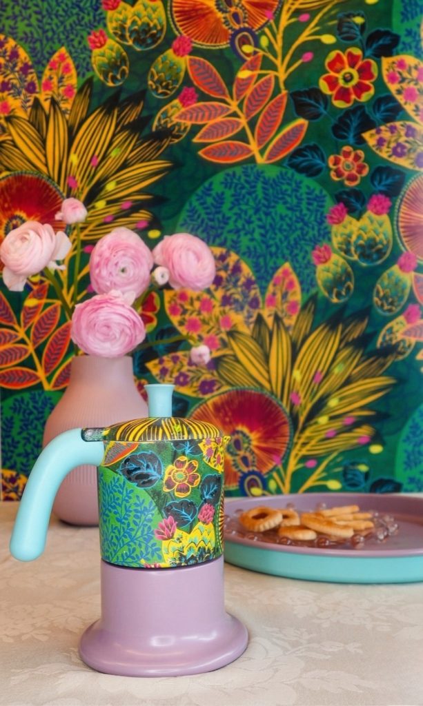 Questa partnership dà vita a una capsule collection che trasforma la moka in una vera e propria superficie artistica, vestendo l’alluminio con i vivaci pattern delle carte da parati.