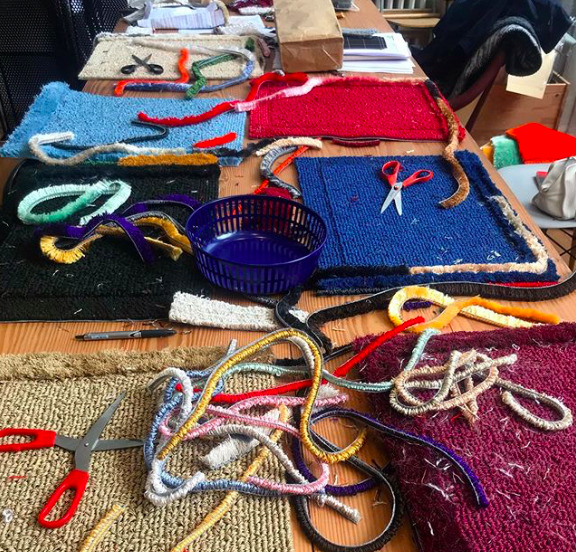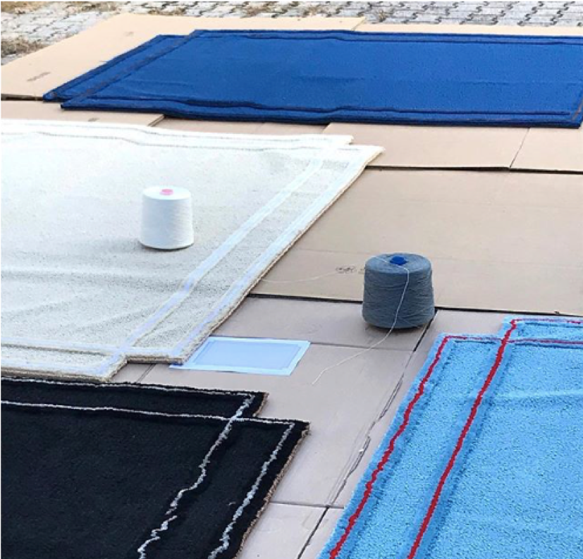 La produzione dei tappeti Volentieri, che viene fatta nelle vicinanze di Venezia, avviene traducendo a livello industriale il processo della taftatura, una tecnica tradizionale utilizzata per la produzione di velluti o ricciolati, che dona al tessile una matericità tridimensionale. Nei nuovi tappeti Magis, velluto e ricciolato sono combinati in un’inconfondibile unione di materiali, forme e colori.