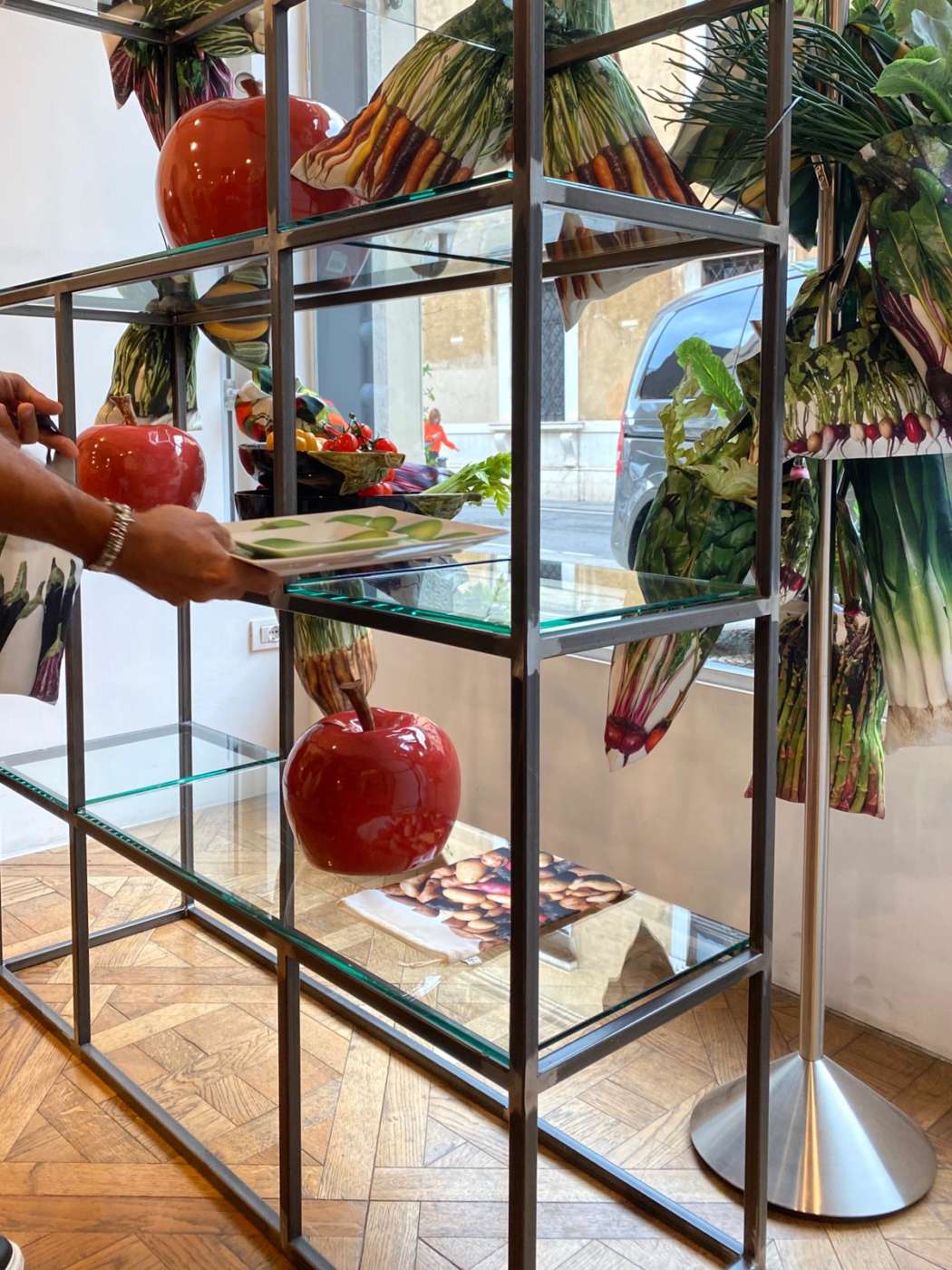 L’arredamento della vetrina è il punto cardine, il primo fondamentale componente di ogni esposizione. Quanto più l’arredamento è regolare e poco appariscente, tanto più risalteranno le proposte che vi si vanno ad esporre che sono e devono essere le protagoniste di ogni allestimento, tutto ciò che le circonda, le decora, le illustra o le arricchisce non deve mai deformarle o soffocarle, né tantomeno distogliere l’attenzione da loro. La costruzione di un allestimento vetrinistico, come qualsiasi work-inprogress, può subire variazioni legate alle circostanze più varie. Una volta costruito l’arredamento, ovvero il contenitore, la cornice, si inizia con il posizionamento della merce nella vetrina. Gli oggetti più voluminosi vanno posizionati nella zona centrale, creando una sequenza piramidale, i colori devono sfumare dal più scuro sulla profondità al più chiaro.