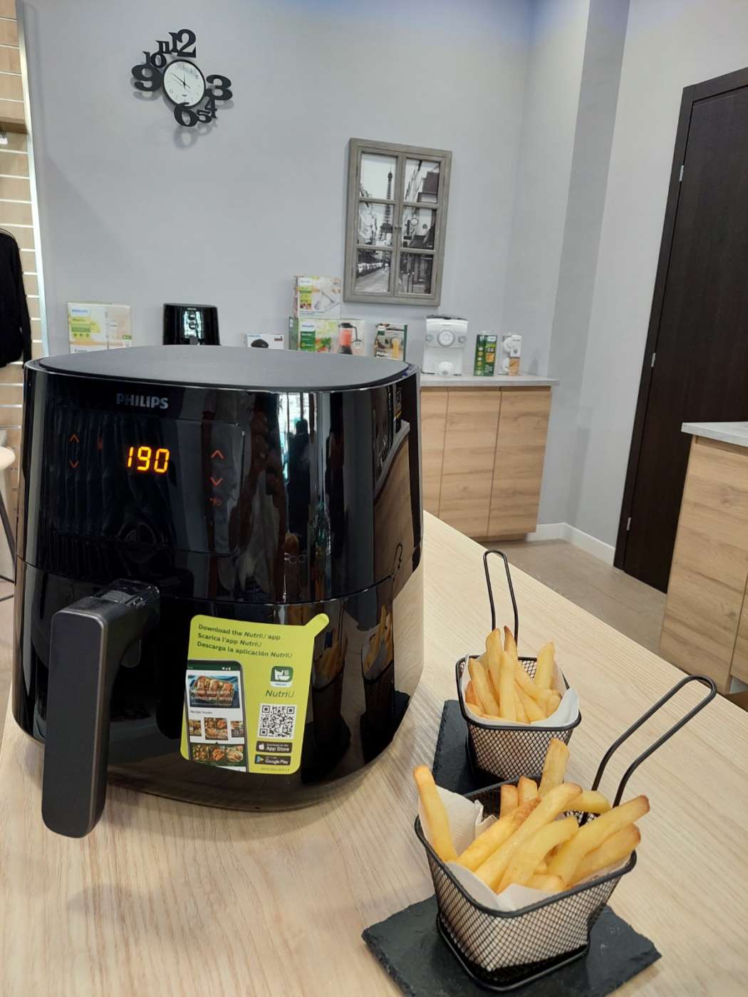 Il Philips Domestic Appliances di Roma è organizzato in diverse mini aree che ricreano alcune classiche ambientazioni domestiche: in entrata sul bancone della cucina è presente l’offerta caffè, con le ultime macchine da caffè automatiche Philips con sistema LatteGo, il corner living ospita invece prodotti floor care e per la purificazione dell’aria, la parete cucina dà spazio ad alcune delle soluzioni più rappresentative del marchio, come l’Airfryer e il Pasta Maker, mentre nell’angolo stiro sono esposti i ferri da stiro con caldaia equipaggiati di tecnologia OptimalTEMP e le stiratrici verticali.