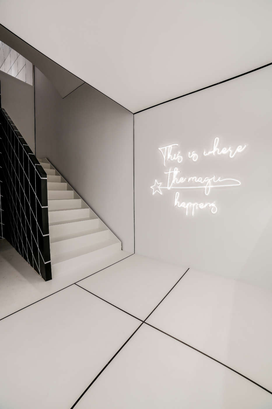 Il risultato è stato raggiunto lavorando sulla luce come elemento attrattore, come stimolo della curiosità femminile, creando prima una sorta di “galleria luminosa”, eterea, che accompagna la cliente al suo interno ed inizia a “raccontare” una storia con il neon che delinea il “where the magic happens”, che è poi divenuto il claim della nuova apertura.