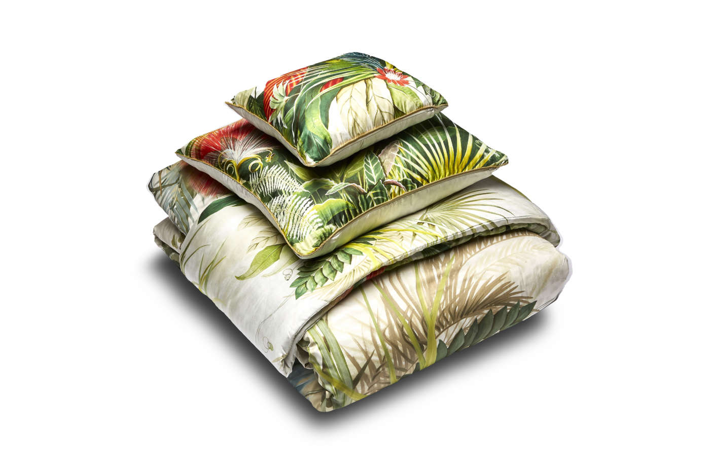 I materiali pregiati – il purissimo raso di cotone e il percalle Louisiana – e la cura dei dettagli regalano un comfort esclusivo, espressione della lunga tradizione di qualità e fine living made in Italy che da sempre contraddistingue la Maison, e danno vita a trapunte, completi copripiumino, completi letto e quilt, che creano un coordinato con i copriletto e i cuscini arredo.